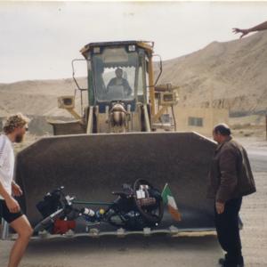 The sides of the lorry were about 3 meters high. You could not lift the bikes over the sides - no change. This was exactly the sort of challenge these guys lived for. Out comes the digger, into the bucket go the bikes, and up into the air they lift. I need not stress how precious I am about these bikes, but father and son display amzign skill and hand our precious load with great care from the bucket into the truck. We hop into the driver’s cap, sitting four abrest and slowly work our way up the climb. This probably wasn’t much faster than cycling and yet, it felt proberly cool to be driven for a change.